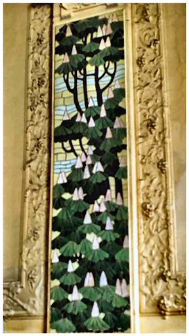 | draperie en symboliek:  | natuur en kleur:  | gebogen vormen, en smeedwerk:  |