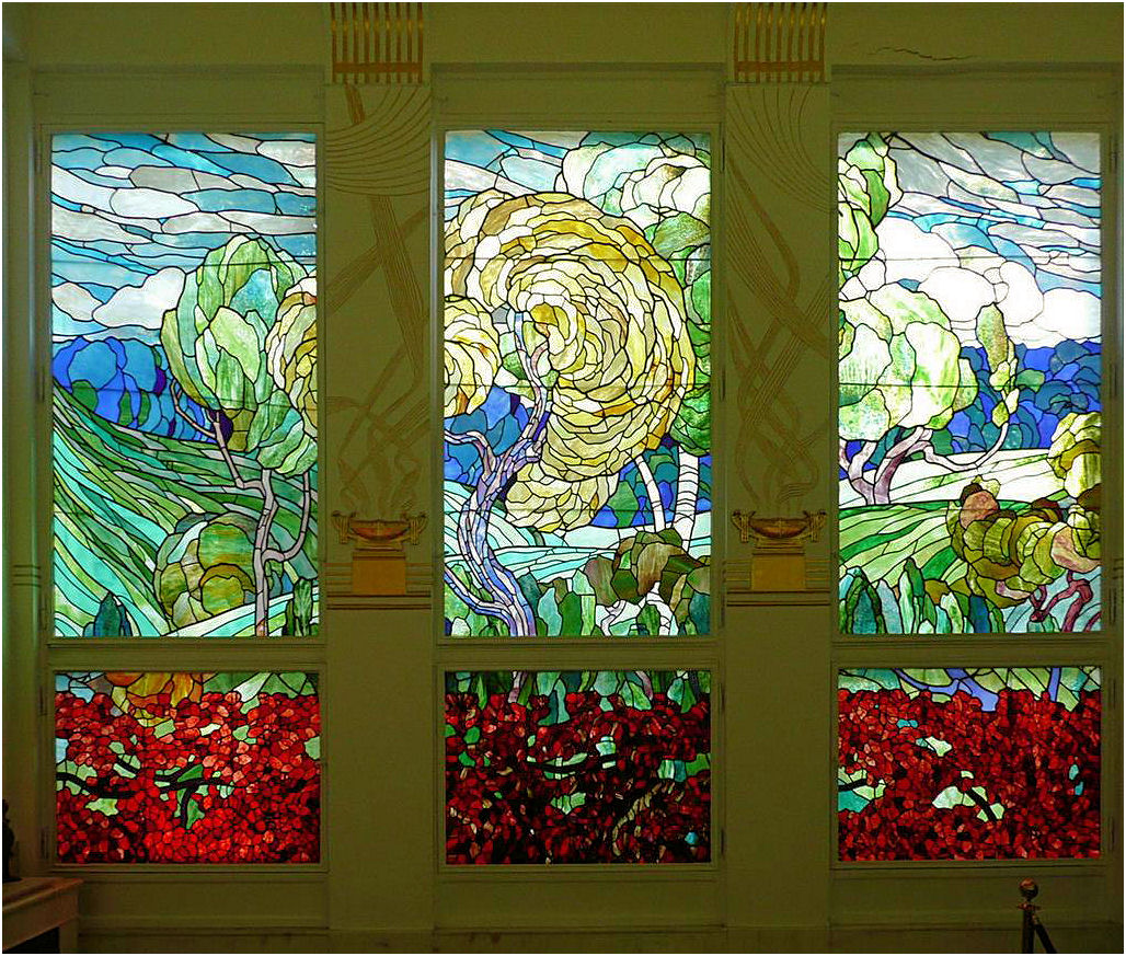 - in de VS Louis Comfort Tiffany (glas-in-lood-lampen e.d.)