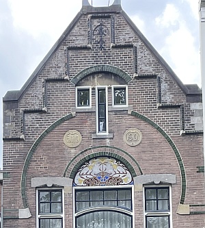 wonderlijk, jugendstil, mengstijl met tuitgevel en quasi-trapgevel, nieuwegracht 87, utrecht, 1901 (foto joostdevree): ![]() |