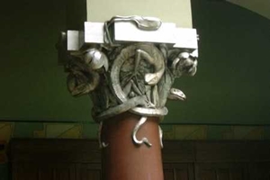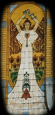 jugendstil-achtig werk uit de '60-er jaren van de 20e eeuw, resp. een hippie-button (zazzle) en een flowerpower (echtilona): ![]() |