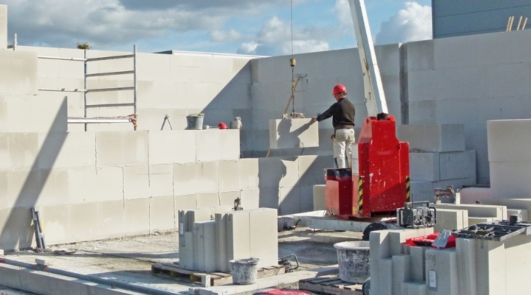 Kalkzandsteen stenen en blokken worden in
