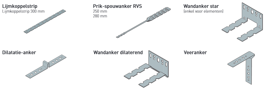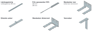 koppelmateriaal bij kalkzandsteen; lijmkoppelstrip, prik-spouwanker, wandanker (star), dilatatie-anker, wandanker (dilaterend), veeranker; klik voor groter! (silka van xella): ![]() |