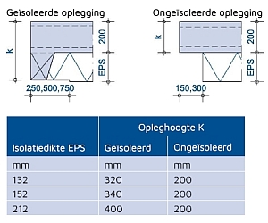 kanaalplaatvloer en opleghoogte, met of zonder geïsoleerde oplegging (vdi): ![]() |