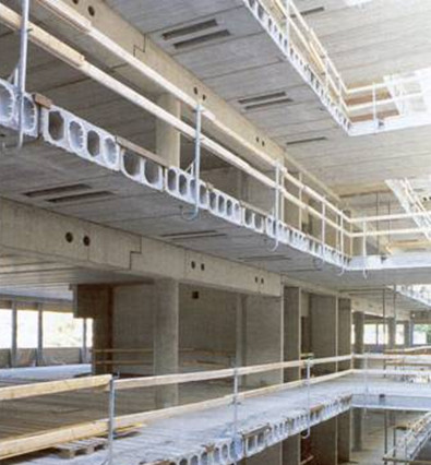 hoge kanalen: kanaalplaatvloer met hoge kanalen, voorzien van kanaaldeksels (van nieuwpoort prefab beton, vbi): ![]() |