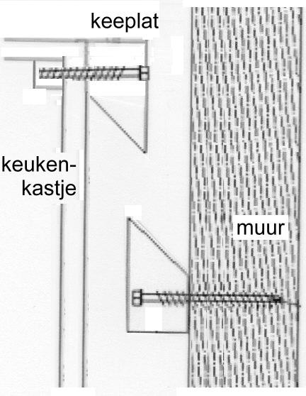 bij het bevestigen van (keuken)kastjes aan een muur werd vaak gebruik