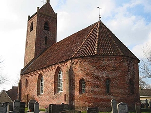 keperfries onder de dakvoet van het schip en het koor van de kerk in justrum/eestrum; klik voor groter: ![]() |