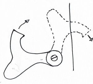 2. Ook: kikkertje. Bij (schuif)ramen het, meestal metalen soms houten, draaibare palletje waarmee het raam te sluiten is.