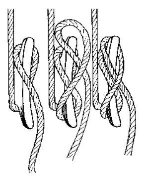 de laatste slag moet "onder zichzelf doorgaan" om ervoor te zorgen dat het touw blijft zitten (waterscouting de ijssel): ![]() |