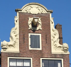 klauwstukken aan weerszijden van de halsgevel, brouwersgracht 48, amsterdam (grachten van amsterdam):![]() |