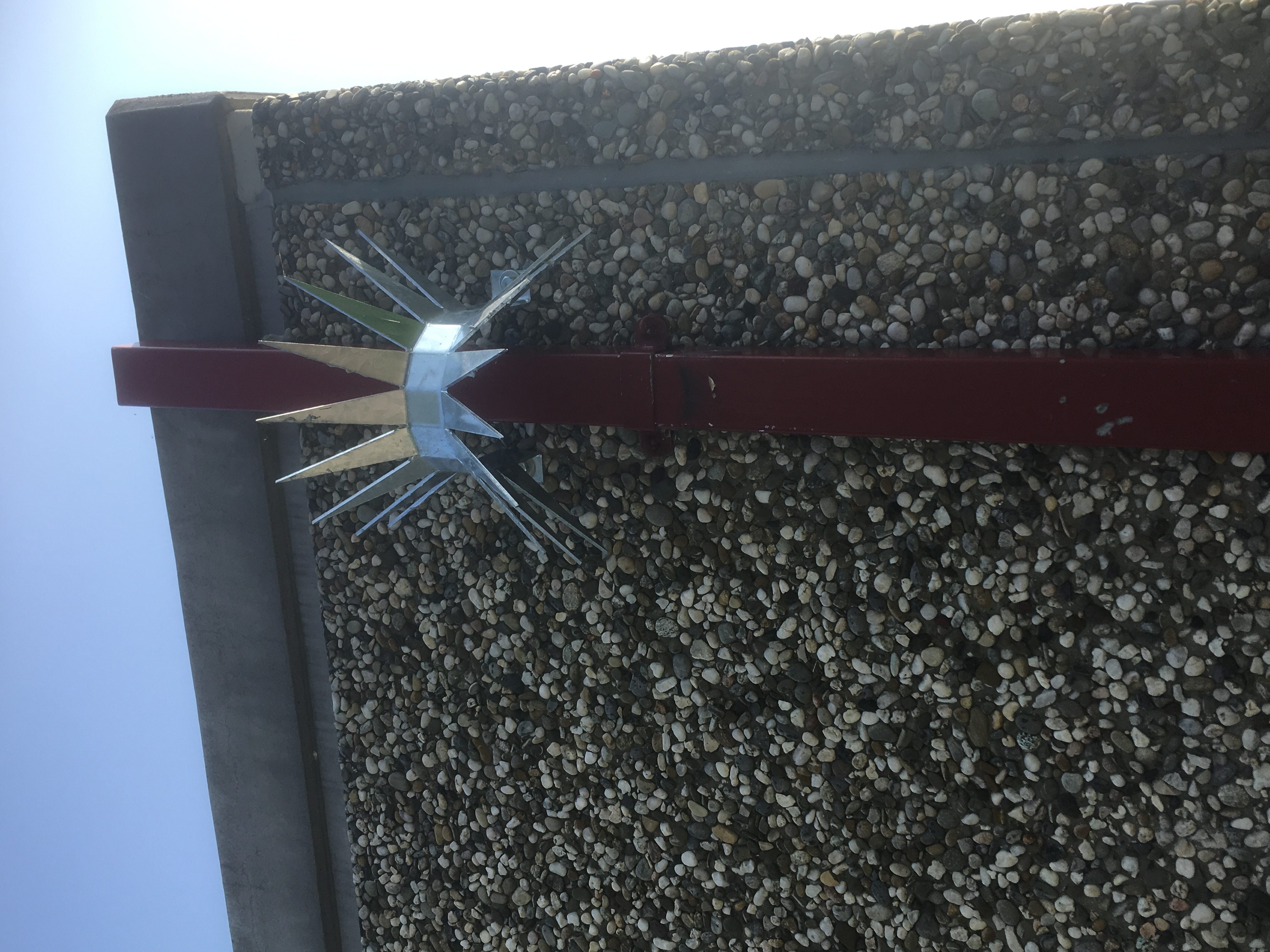 muur of woning geklauterd wordt. Naast prikkeldraad en ingemetselde