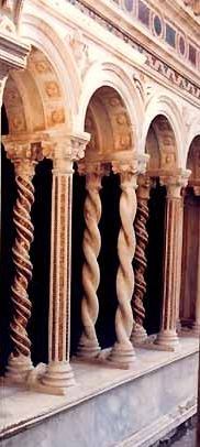 Een kluwenzuil is een zuil die lijkt te zijn opgebouwd uit twee of meer om elkaar gewonden zuilen. De eerste foto toont duidelijk kluwenzuilen en de tweede Salomonszuilen.