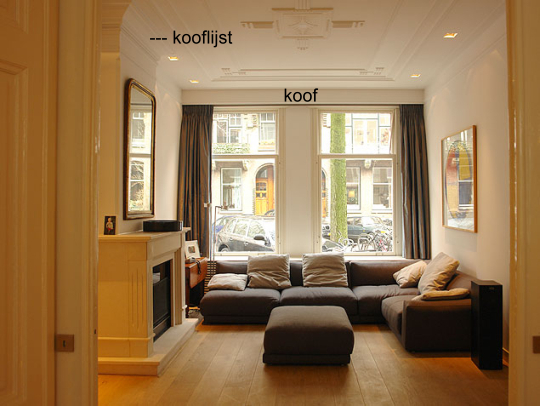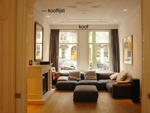 en plafond maar vaak niet in het snijdingsvlak (zoals bij een lambriseringslijst);