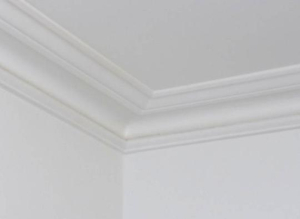 hoek tussen muur en plafond wordt bevestigd. De kooflijst raakt aan muur
