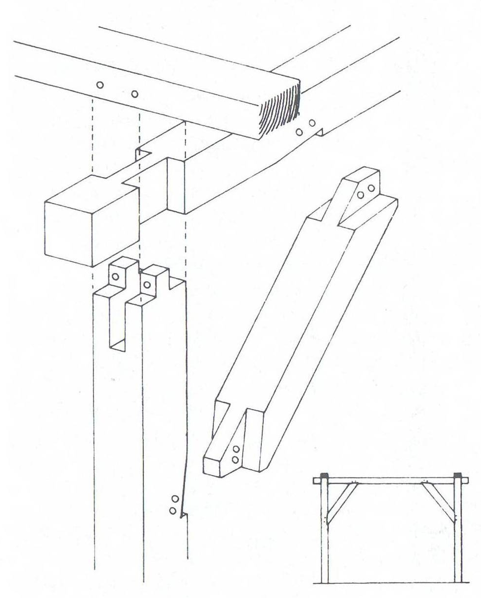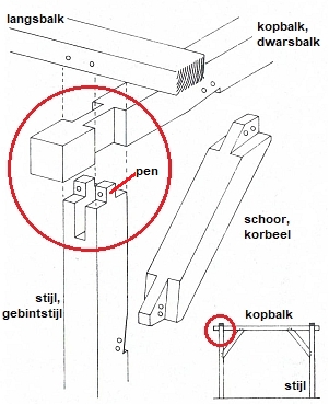 kopbalkgebinten bovenaan verbindt met pen-en-gat in de stijl) "sandwicht" samen met de stijl