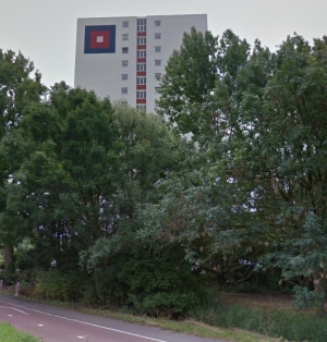 hoogbouw, herkenbaar gemaakt door beschildering van de kopgevel, den haag (google maps): ![]() |