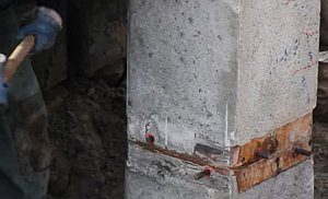 koppelpaal; inslaan pinnen als zekeringen bij de koppeling (voorbij funderingstechniek): ![]() |