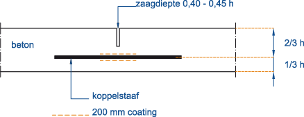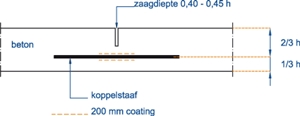 koppelstaaf (met coating) en langsvoeg (met zaagdiepte) in de wegenbouw (betoninfra): ![]() |