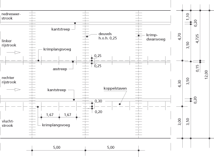 'gesloten' te houden. Koppelstaven kunnen bij aanleg van meer rijstroken in één werkgang machinaal worden ingetrild. Bij later aan te sluiten stroken worden de koppelstaven veelal ingeboord en verlijmd."