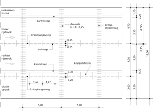 "Bij de wegenbouw wordt het midden van de staaf, ter plaatse van de langsvoeg zelf, voorzien van een
