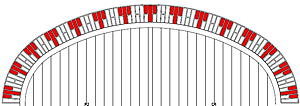 van de boog) is, voor zover aanwezig als aparte steen, bij een korfboog meestal