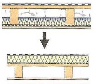- bij herstelwerkzaamheden e.d. dient erop gelet te worden dat er geen (regen)water in het niet afgedekte koude dak kan treden.