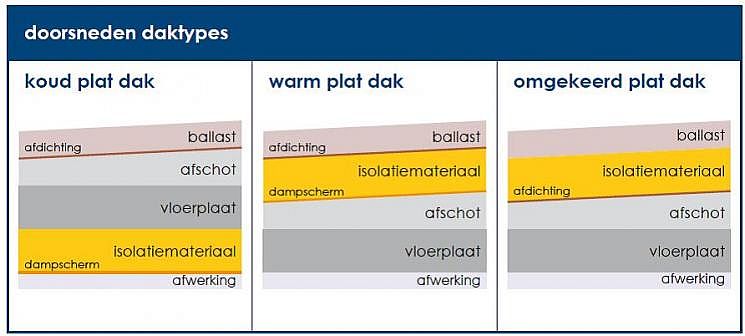 doorsneden daktypes koud, warm en omgekeerd plat dak; klik voor groter! (energiesparen): ![]() |