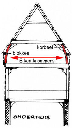 grote krommers (bijna tot de nok), en kleine krommers die gelijktijdig korbeel zijn; klik voor groter (carpenter oak): ![]() |