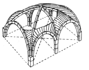 zesdelig kruisribgewelf (de ribben dragen het gewelf): ![]() |