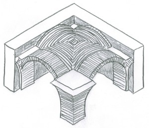 en de betonnen afwerking van het bovenstaande kruisgewelf: ![]() |