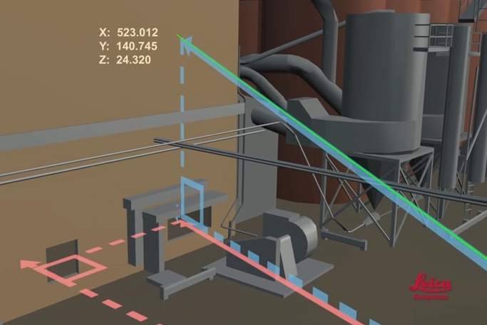 één van de resultaten van 3d laser scanning: van elk punt is tot elk ander punt de afstand te bepalen; klik voor groter (leica geosystems): ![]() |