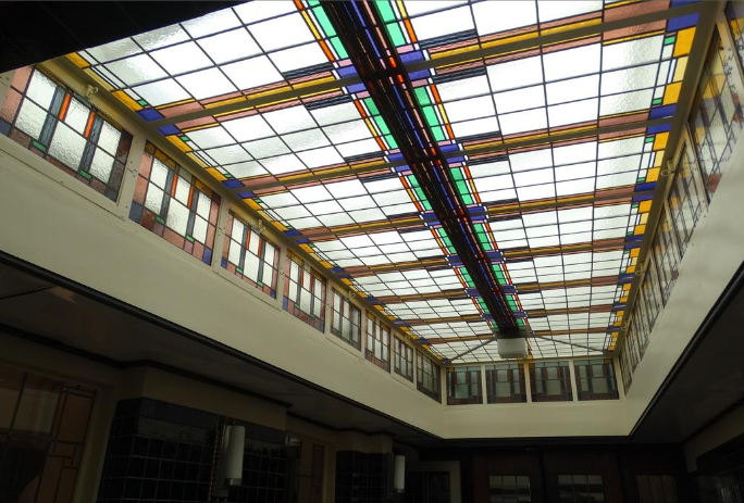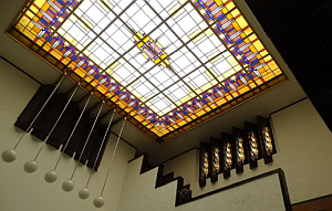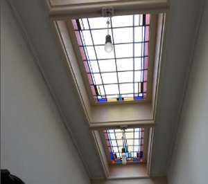 De ruiten zijn vaak glas-in-lood, maar kunnen bijvoorbeeld ook van melkglas zijn om een diffuus licht te verkrijgen.