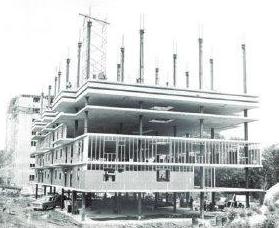 lift-slab methode, bouwmethode (hier waarschijnlijk 7 bouwlagen):![]() |