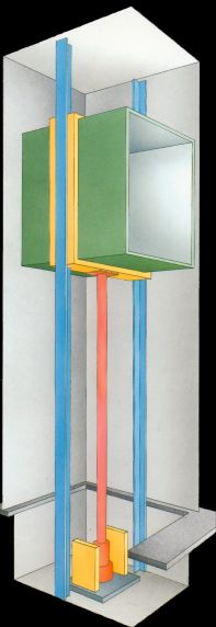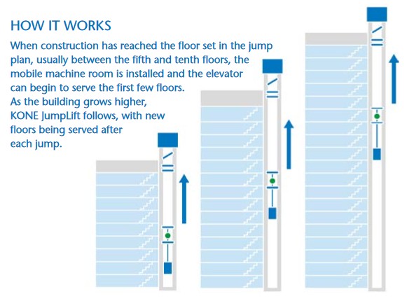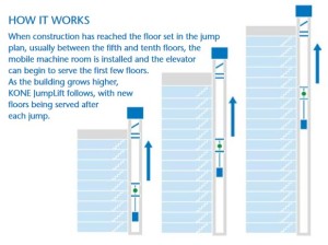 bouwen vanuit een jumplift (deksel, werkeiland, machinekamer, liftkooi); klik voor groter (kone): ![]() |