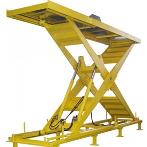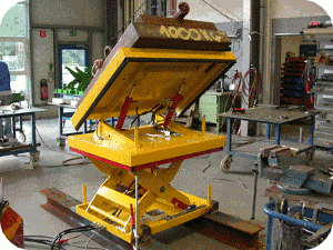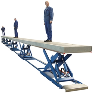 Enkele schaar, horizontaal; aaneen geven meer heftafels een zeer breed platform: ![]() |