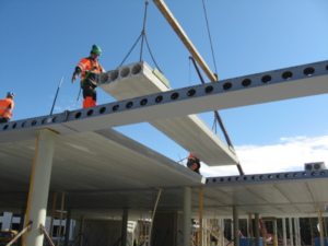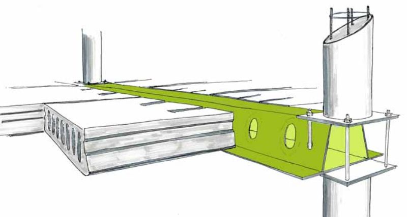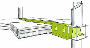 staal-betonligger deltabeam, waarmee het minimaliseren van verdiepingshoogten en het maximaliseren van overspanningen mogelijk is; deltabeam kan tot 3 uur brandwerend zijn (peikko): ![]() |