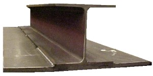 T-ligger van voorgespannen beton met (zwarte band) vilt eronder: ![]() |