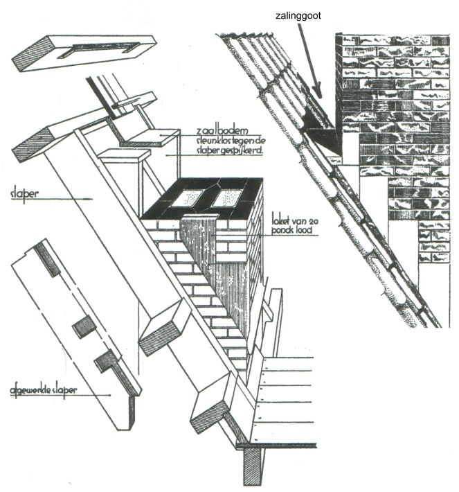 Zie vooral Stichting Bouwlood met vele animaties en stappenplannen, zaling en eventueel loodslab, kapconstructies allerlei (figuur A.5) en hondsoor.