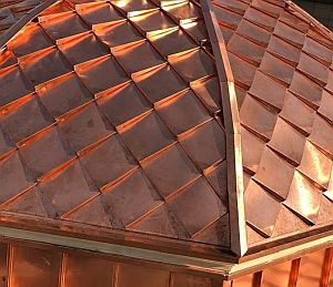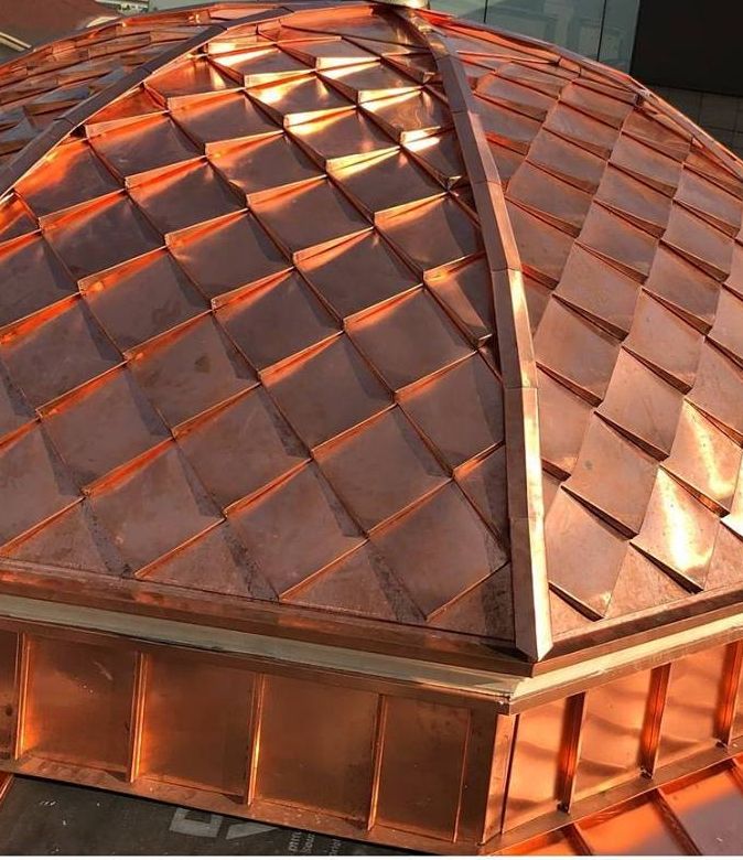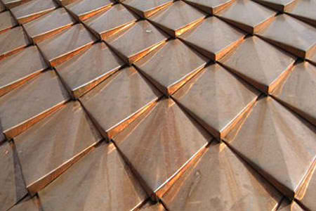 "dragon scale", "dragen skin", dakbedekking die lijkt op een drakenhuid, hier in koper uitgevoerd (fine metal roof tech): ![]() |