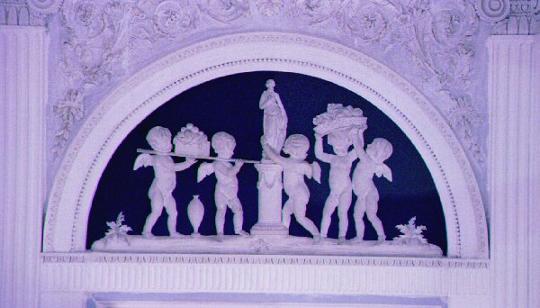 Verg. bovenlicht, snijraam, mascaron, spiegelstuk, wenkbrauw.