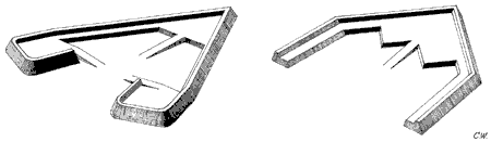 - klein verdedigingswerk met voornamelijk twee schuine zijden