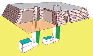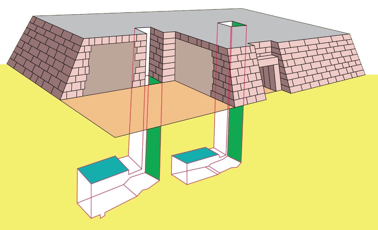afbeelding van een mastaba met ondergrondse grafkamers (jon bosworth, egypt archive via wikipedia): ![]() |