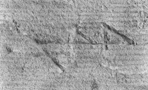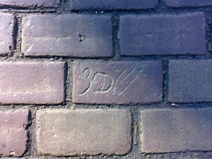 (merk)teken op straatsteen kralingse bos; gezien het handschrift wellicht al aangebracht bij aanleg in de jaren 1930 (foto joostdevree): ![]() |