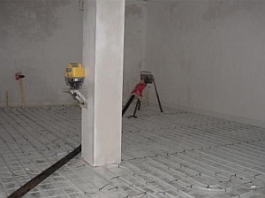 - als de vloer nog aanwezig is, of het gewenste peil op een andere manier toch bekend is, kun je op de muren een streep trekken (eerst met laser aan te geven)