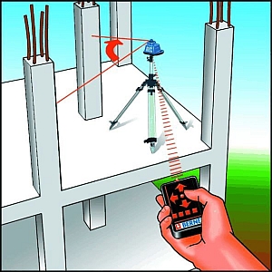 de (gele) rotatielaser geeft het meterpeil aan (berkers vloerenbedrijf):![]() |