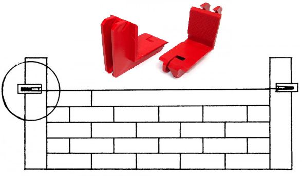 draadopsteek (opspanblokje) om de metseldraad gemakkelijker te kunnen opsteken: ![]() |
