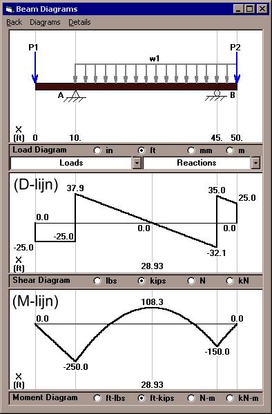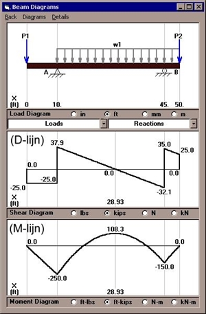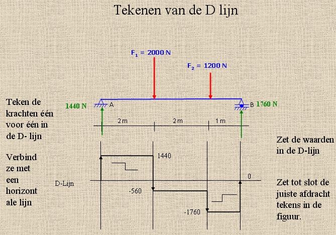 normaliter verkregen uit de dwarskrachtenlijn (D-lijn of V-lijn).