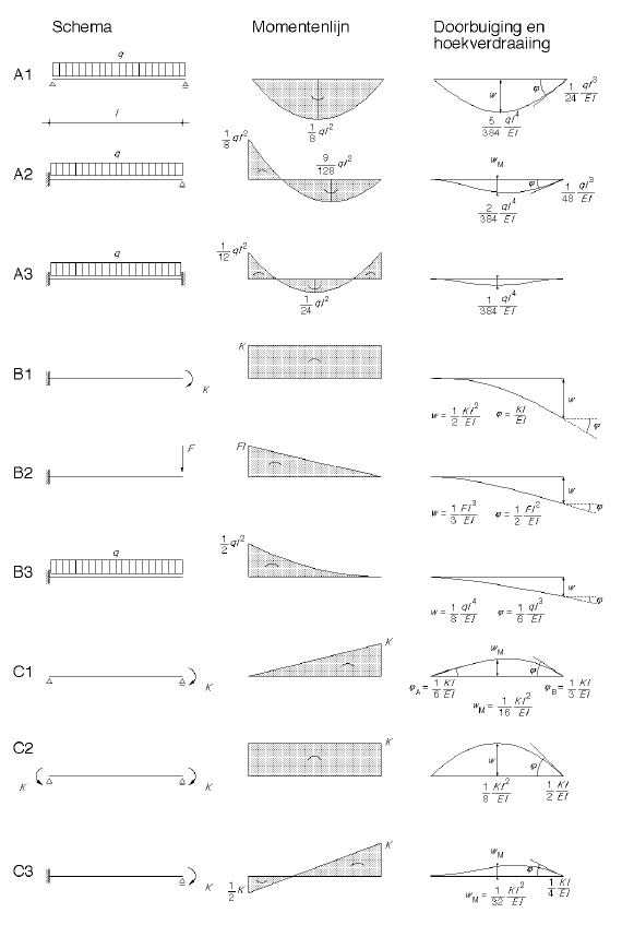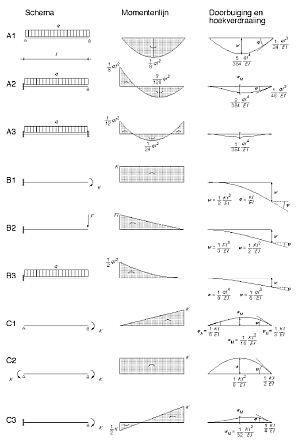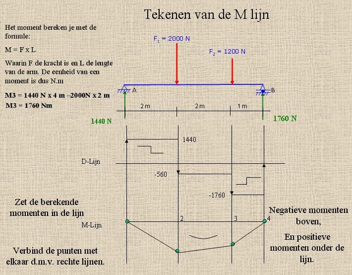 - De momentenlijn wordt voorafgegaan door de dwarskrachtenlijn.