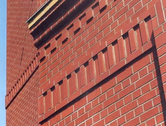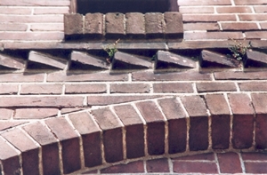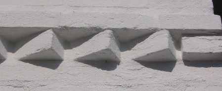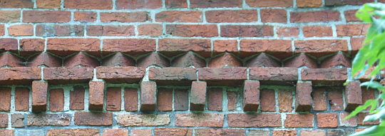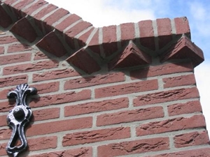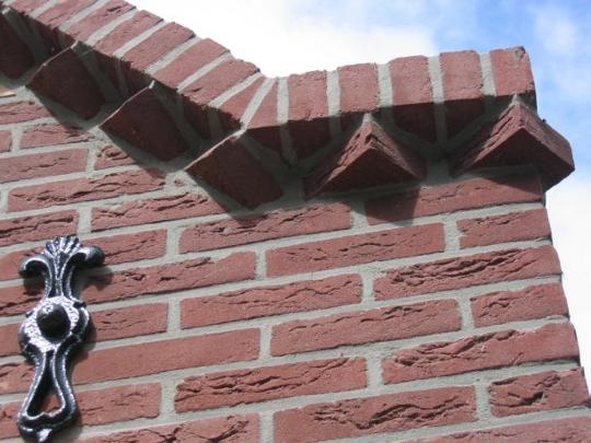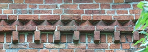 Verg. kraalprofiel, zaagtandfries, rollaag, muizentrapje. Eng. dentil course;