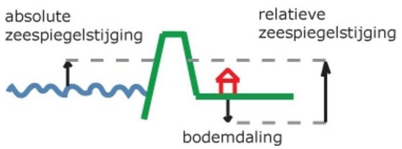 relatieve zeespiegelstijging is de som van bodemdaling en absolute zeespiegelstijging (knmi): ![]() |