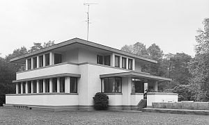 nieuwe zakelijkheid (functionalisme), villa henny (ook: villa nora van a.b. henny), amersfoortseweg, huis ter heide, betonskelet, gevels baksteen met bepleistering, arch. robert van 't hoff, ontwerp 1914 (foto t. schollen, 1979, beeldbank cultureel erfgoed, document 207810):![]() |